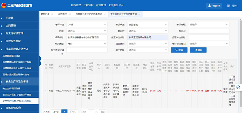 該項目在2023年度安全生產標準化季度考評和質量管理標準化季度考評中獲得了較好成績。質量管理標準化季度考評第二、三季度被評為優良;安全生產標準化季度考評第三、四季度被評為優良。