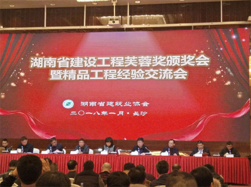 2018年1月19日,由湖南省建筑業(yè)協(xié)會(huì)舉辦的湖南省建設(shè)工程芙蓉獎(jiǎng)?lì)C獎(jiǎng)會(huì)暨精品工程經(jīng)驗(yàn)交流會(huì)在長(zhǎng)沙舉行。我司承建的婁底市孫水世家商住小區(qū)(怡河園)2#樓獲得湖南省建設(shè)工程質(zhì)量最高獎(jiǎng)—“芙蓉獎(jiǎng)”殊榮。這是我司自市農(nóng)業(yè)銀行綜合樓、市委市人民政府辦公樓1#、6#、7#、雙峰縣體育中心體育館喜獲“芙蓉獎(jiǎng)”后,第四次獲得“芙蓉獎(jiǎng)”殊榮。