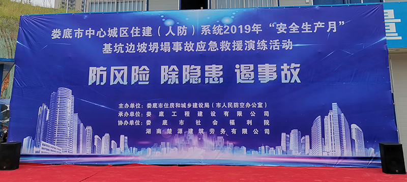 為深入貫徹黨的十九大和十九屆二中、三中全會(huì)精神,認(rèn)真學(xué)習(xí)貫徹習(xí)近平總書記關(guān)于安全生產(chǎn)的重要論述,為新中國(guó)成立70周年?duì)I造良好的安全生產(chǎn)環(huán)境,積極響應(yīng)省、市關(guān)于2019年“安全生產(chǎn)月”活動(dòng)的有關(guān)文件要求,加強(qiáng)建筑工地應(yīng)對(duì)突發(fā)事件的處理能力,提高全員安全意識(shí),切實(shí)掌握應(yīng)急救援的技能、技巧,讓員工在事故發(fā)生時(shí)將傷害減少到最低。我司特承辦了由婁底市住房和城鄉(xiāng)建設(shè)局(人民防空辦公室)主辦的2019年“安全生產(chǎn)月”“防風(fēng)險(xiǎn)、除隱患、遏事故"建筑施工基坑坍塌事故應(yīng)急救援演練活動(dòng)。
