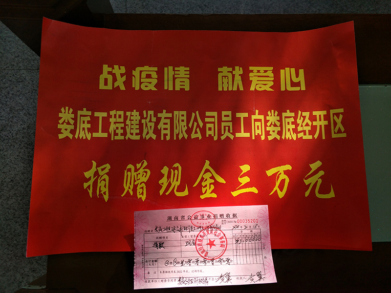 戰疫情,獻愛心!婁底工程建設有限公司員工積極響應公司號召,踴躍奉獻愛心。2月18日,公司工會主席羅堅代表公司將3萬元的員工捐款交給了婁底經濟技術開發區社會事務局,以實際行動支持疫情防控工作。